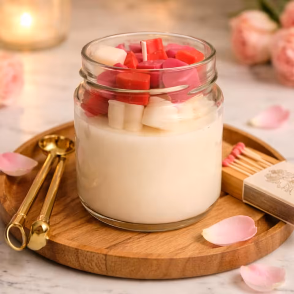 Delikatny aromat róży subtelnie wypełnia przestrzeń, tworząc atmosferę spokoju, ciepła i bliskości. To świeca sojowa handmade, która doskonale sprawdzi się jako prezent na Walentynki, rocznicę, urodziny, Dzień Kobiet lub jako romantyczny gest bez okazji.