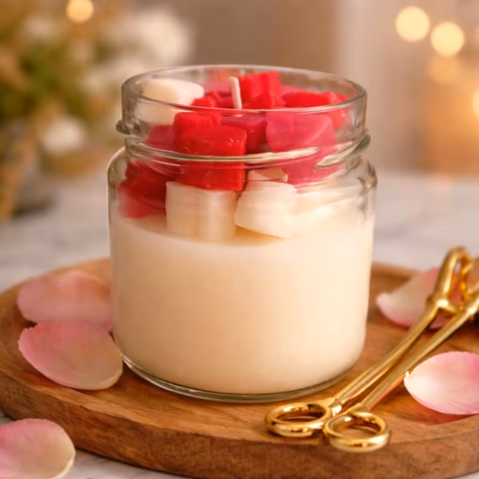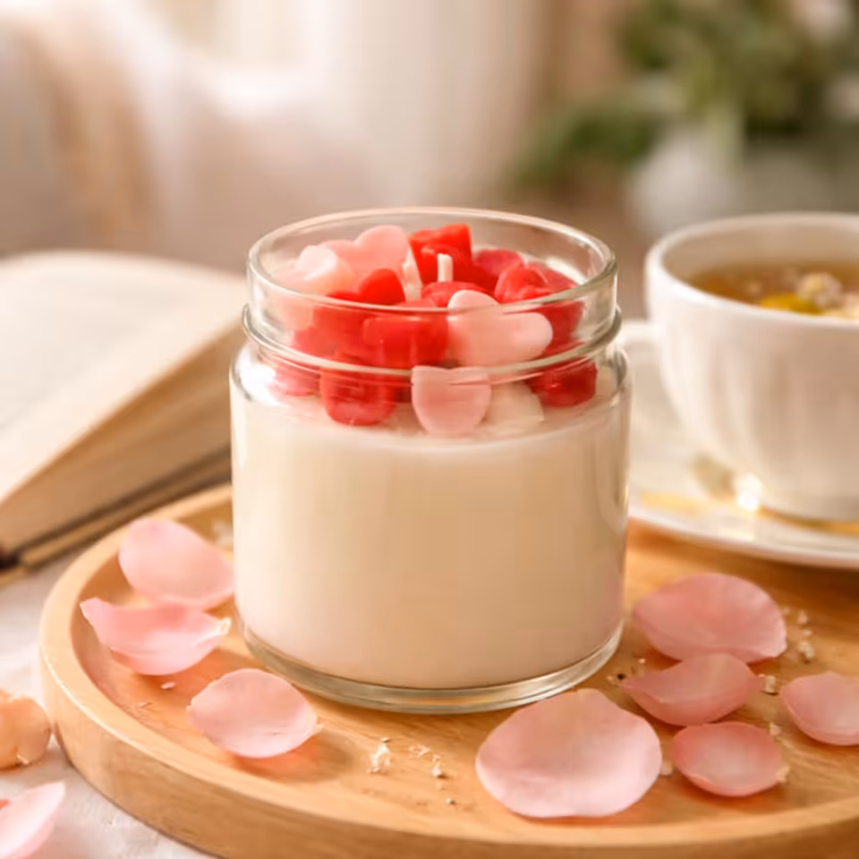 Ręcznie robiona świeca sojowa z serduszkami – zapach róży