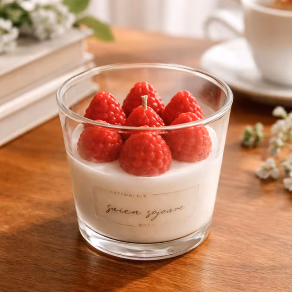Ręcznie wykonane, realistyczne maliny nadają świecy unikalny charakter. To nie tylko świeca zapachowa, ale również stylowa dekoracja wnętrza, która przyciąga wzrok i podkreśla naturalny klimat pomieszczenia.